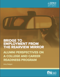 Over 5,000 students and countless volunteers have participated in BTE during our 25+ years. We collected their stories and distilled lessons from them for the future of the program. Read BTE from the Rearview Mirror: Alumni Perspectives on a College and Career Readiness Program, a study conducted by Amy Detgen at FHI 360. Click the thumbnail below to see the Report.